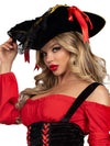 Take command of the ship and set sails for adventure in the Swashbuckler Hat with Lace Trim and Satin Bows. This captain-worthy hat adds a flirty touch to any pirate costume with the red satin bows, lacy trim and glistening gold trim. The luxe details, stylish rolled design and woven felt material are lightweight and comfortable for easy wear. Pair with the Leg Avenue Charming Pirate Captain costume or the Leg Avenue Ruthless Pirate Wench costume for a sexy seaworthy pirate look for women. One Size Fits All.